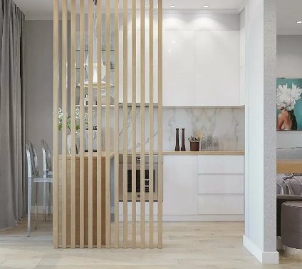 Оформляем перегородку для шкафов или кладовых. Выбрав рейки в качестве такого варианта, вы не прогадаете, так как выглядит такое решение очень стильно.