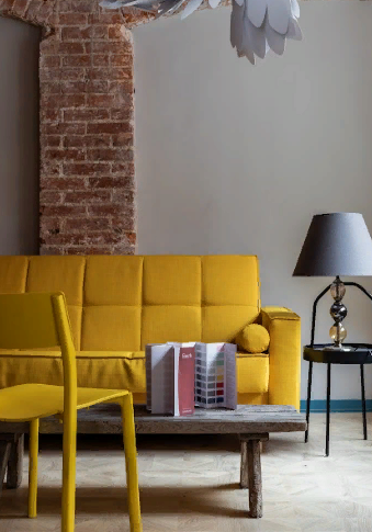 Теперь акцентным цветом может быть даже желтый желтый. Его использование пошло сквозь призму недоверия и критики. Компромиссным вариантом считается применение различных оттенков цвета – от сливочного масла до почти оранжевого мангового сорбета.