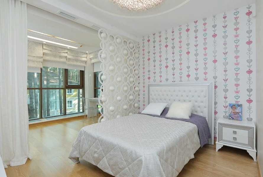 Чтобы комната выглядела более просторной, в миниатюрных помещениях вместо объемных штор лучше использовать рулонные или римские. Карниз можно оформить красивыми драпировками, что будет нестандартным украшением оконного проема. Такие изделия не перегружают интерьер, кажутся невесомыми и хорошо пропускают солнечный свет.