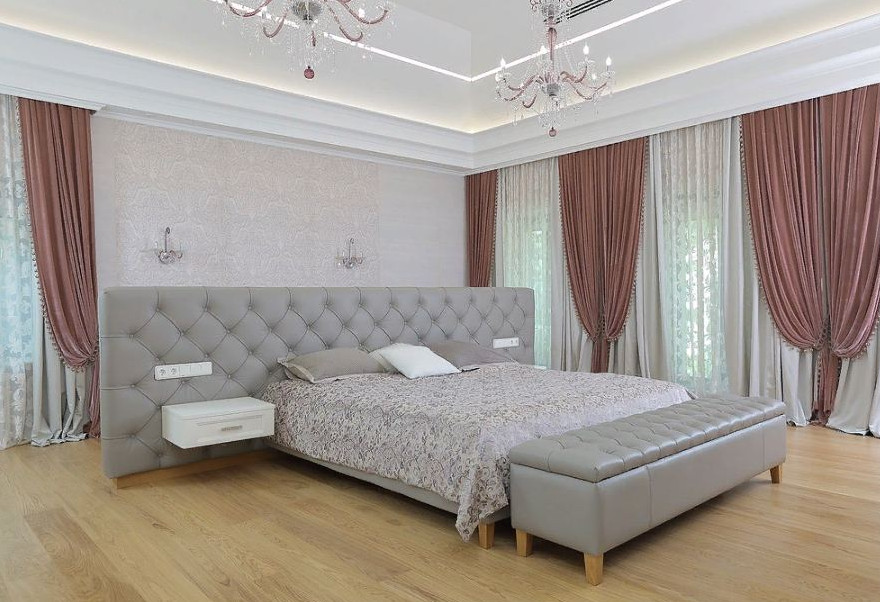 Для классики характерны узоры, яркие решения, необычные подхваты и ламбрекены.