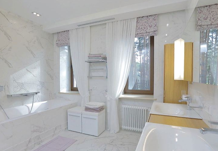 Очень актуальны сейчас римские шторы, которые можно комбинировать с занавесками.