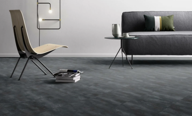 Имитировать бетон и камень может кварцвиниловая клеевая и замковая плитка, керамогранит, ламинат.