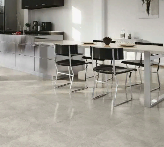 Во-вторых, укладка клеевого кварцвинила возможна без порогов. Это очень удобно при проектировании интерьера, так как полы на кухне могут быть продолжением других помещений. Кроме того, отсутствие порогов облегчает уборку и поддержание чистоты в кухонном пространстве.