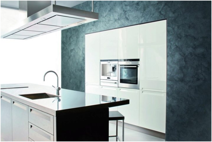 Стена на кухне в холодных тонах - тренд в оформлении современных интерьеров