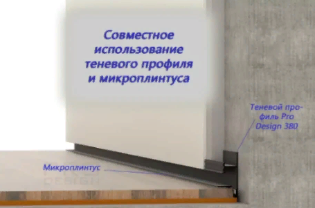 Микроплинтус Pro Design Mini 7067 можно использовать вместе со скрытым плинтусом Pro Design 380.