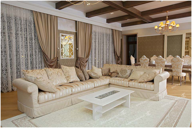 Проектируя интерьер, мы учитываем пожелания заказчика. И очень часто материалы напольного покрытия в помещениях разные. Кухня, ванная комната – здесь обычно люди хотят видеть практичное, водостойкое покрытие, например, керамогранит. В детской комнате, спальне хочется комфорта, например, теплой пробки или паркетной доски.В гостиной можно тоже использовать натуральные покрытия.